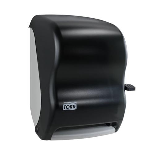 The Tork® Hand Towel Roll Dispenser with a lever provides a clean, modern appearance that compliments all decors. Its translucent cover allows for "at a glance" inspection for refills and hides scratches and maintains image. Guests only touch the paper they need, making this a sanitary option and its lever-controlled consumption means less waste, lower costs and it has a stub roll auto-transfer feature. The dispenser has a high capacity for reduced costs and fewer service interruptions as well as a built-in pilferage control. No exposed metal parts to corrode or rust. Built to last. Replaces 84T, 85GR.