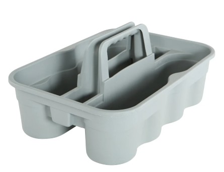 This heavy-duty cleaning supply carry caddy conveniently fits on cleaning and housekeeping carts. This all-purpose caddy securely holds up to eight 32-ounce spray bottles or sponges, rags and other common cleaning tools. It is commonly used in garages, car detailing shops, kitchens, bathroom, janitor cleaning organizing etc.